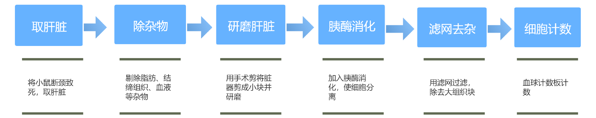 原代细胞的分离是将人/小鼠等特异模式动物的细胞从机体中取出,经胰酶、螯合剂(常用EDTA)处理,分散成单细胞,置合适的培养基中培养,使细胞得以生存、生长和繁殖的过程。原代培养是指直接从机体取下细胞、组织和器官后立即进行培养。因此,较为严格地说是指成功传代之前的培养,此时的细胞保持原有细胞的基本性质,如果是正常细胞,仍然保留二倍体数。但实际上,通常把第一代至第十代以内的培养细胞统称为原代细胞培养。最常用的原代培养有组织块培养和分散细胞培养。