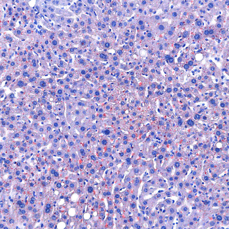技术原理 油红O对脂滴的染色机制一般认为是物理学上的溶液作用或吸附作用,借溶液作用使脂质染色,即油红O先溶于60%异丙醇中,然后切片浸入油红O染液中时,油红O在组织脂质的溶解度较60%异丙醇中的溶解度高,所以在染色时油红O从60%异丙醇中转移入脂质中使脂滴显示红色。实验流程实验结果展示:&